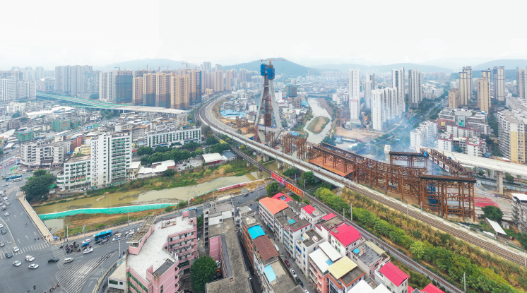 同時,高121米“寶石”型主塔預計1月10日前實現(xiàn)封頂,將于2020年2月底進行第一次轉體施工。