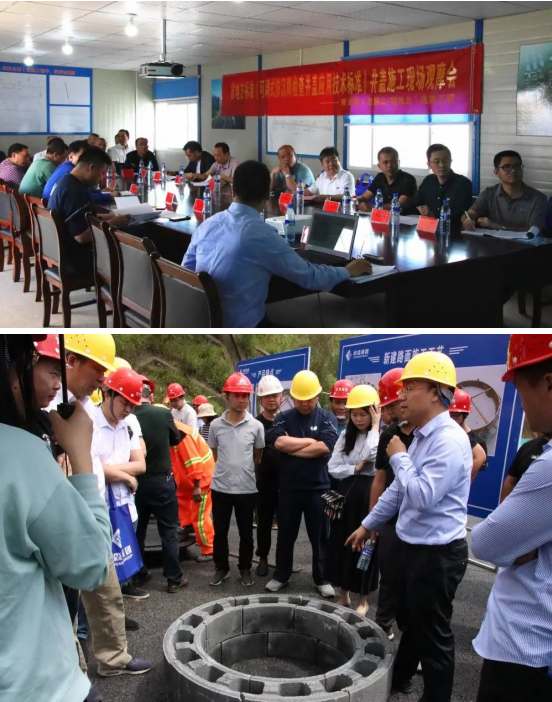 觀摩會采用理論討論和現場觀摩相結合的方式,現場展示了新建道路防沉降井蓋安裝的全過程和舊路面井蓋修復工藝。